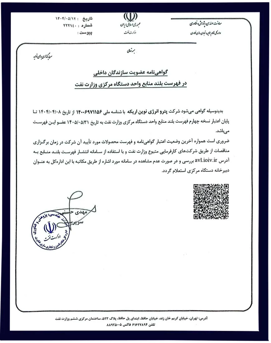 Quality Certificate for Oil, Petrochemical, Gas Industries